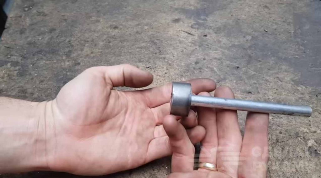 Вставляем пруток в отверстие, после чего обвариваем. Затем нужно будет приварить шайбу, внутри которой имеются пазы для приводной звездочки бензопилы.