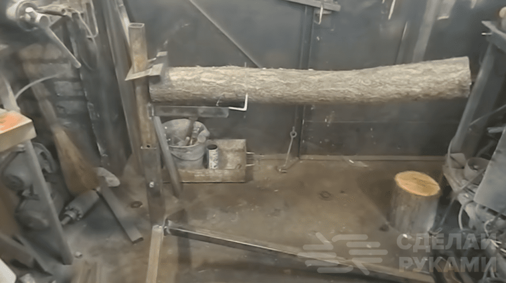 Потом останется только сварить нижнюю часть конструкции (стойку и упорные ножки), а также крепление для быстрой фиксации бревна. Подробно о том, как сделать металлическую стойку, смотрите в видеоролике на сайте.