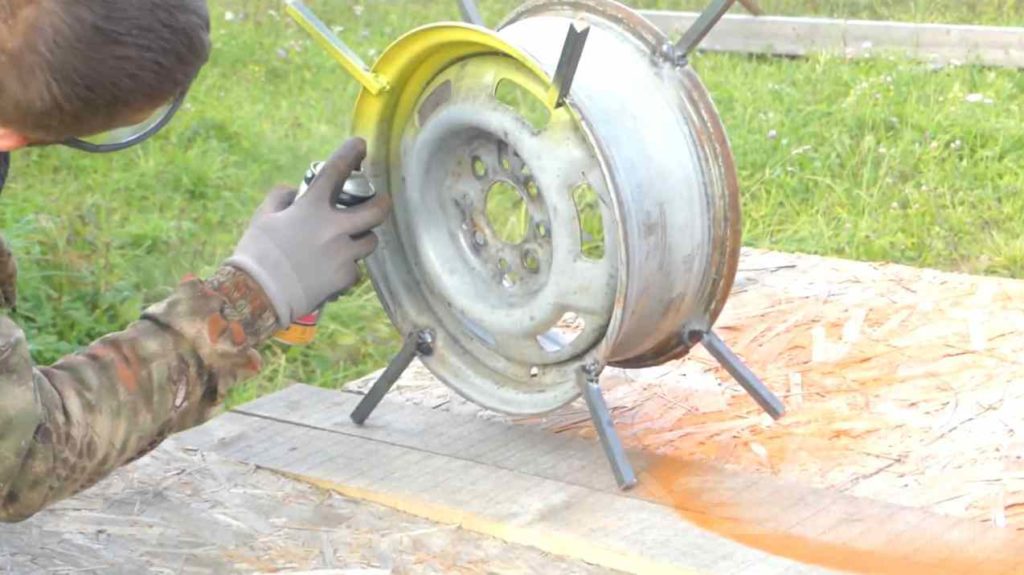 После этого зачищаем сварные швы и можно приступать к покраске колесного диска. Для этого удобно использовать баллончик с краской.