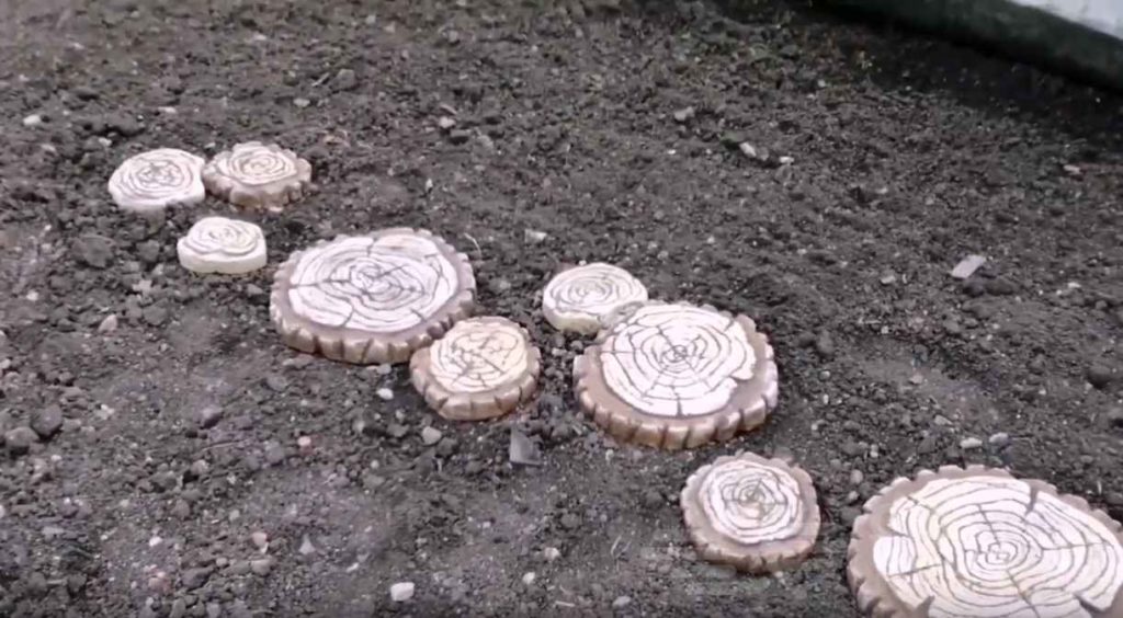 Однако даже не имея молдов для заливки, вы можете вручную сделать эффектную плитку в виде древесных спилов. Автор предлагает идею, как вырезать и покрасить элементы, придав им натуральный вид.
