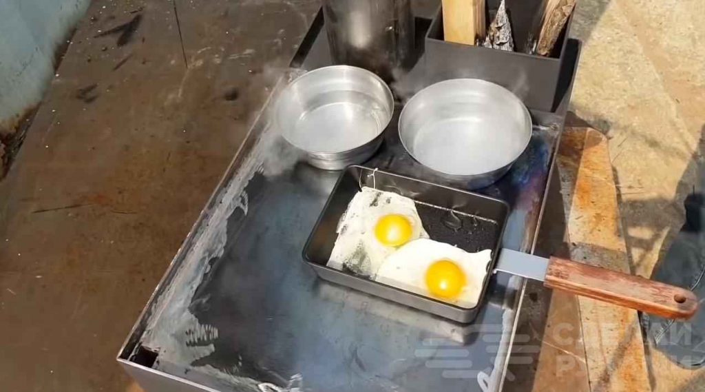 Печка имеет большую варочную поверхность, на которой можно одновременно разместить несколько кастрюль и сковородок. Это очень удобно, когда вы отдыхаете большой компанией.