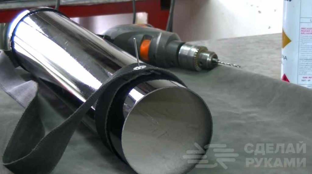 Стропу нужно будет закрепить по кругу при помощи заклепок. По мере надобности можно покрасить весь тубус. Сверху будет стоять заглушка, но уже без клея.