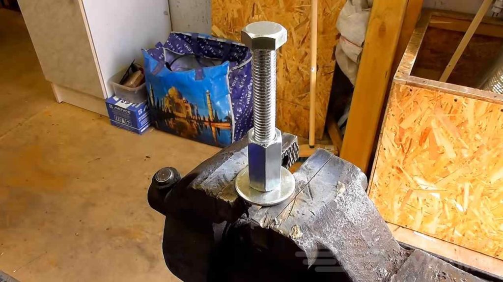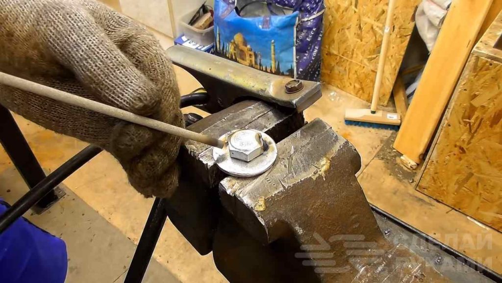 На следующем этапе потребуются длинные и короткие болты с шайбами и гайками. Одни шайбы нужно приварить к шляпке коротких болтов, другие — к удлиненным гайкам, в которые вкручиваются длинные болты.