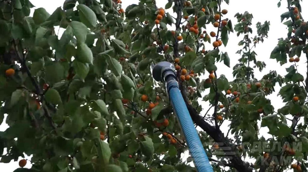 При помощи этого самодельного приспособления очень удобно собирать абрикосы с дерева, находясь при этом на земле.