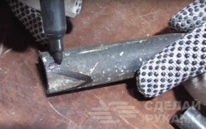 Зубья нужно прижать друг к другу, чтобы получился острый конец (как у лома), а потом проварить швы электросваркой и зачистить места соединения болгаркой. Также к вертикальной стойке необходимо будет приварить опорную площадку, сделанную из стальных квадратных прутков или профильной трубы.