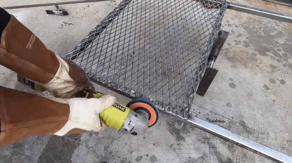 Затем останется только отрезать по размеру металлическую решетку, и приварить ее к ячейкам, расположенным по бокам собранной конструкции. Сварные швы нужно зачистить. Далее можно приступать к покраске.