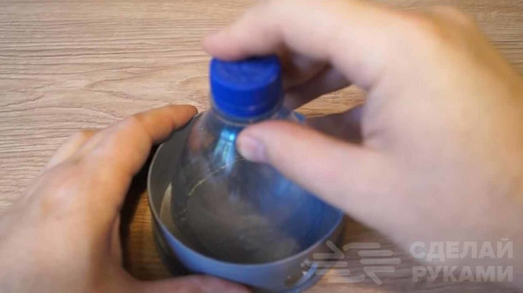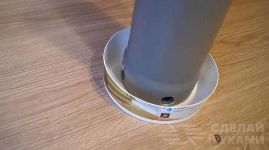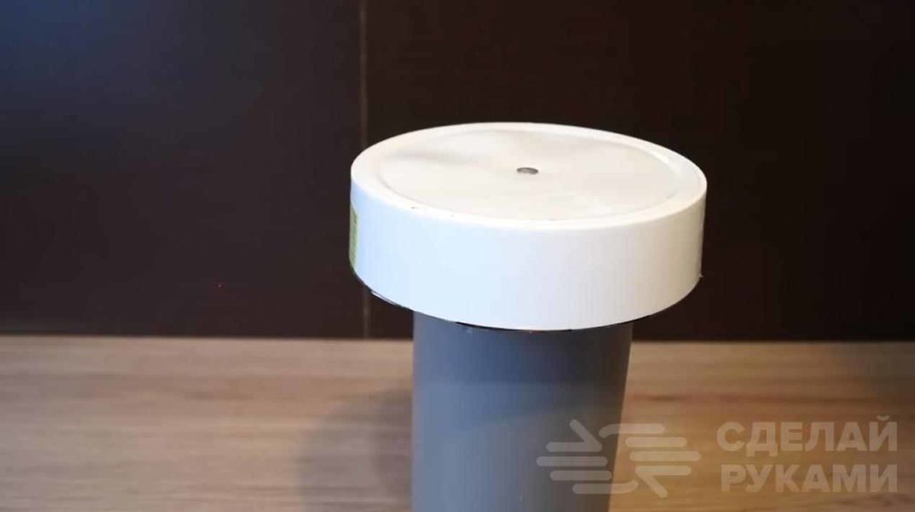 К внутренней стороне заглушки автор приклеивает часть пластиковой бутылки с горлышком. Потом заглушку надо установить обратно в трубу.