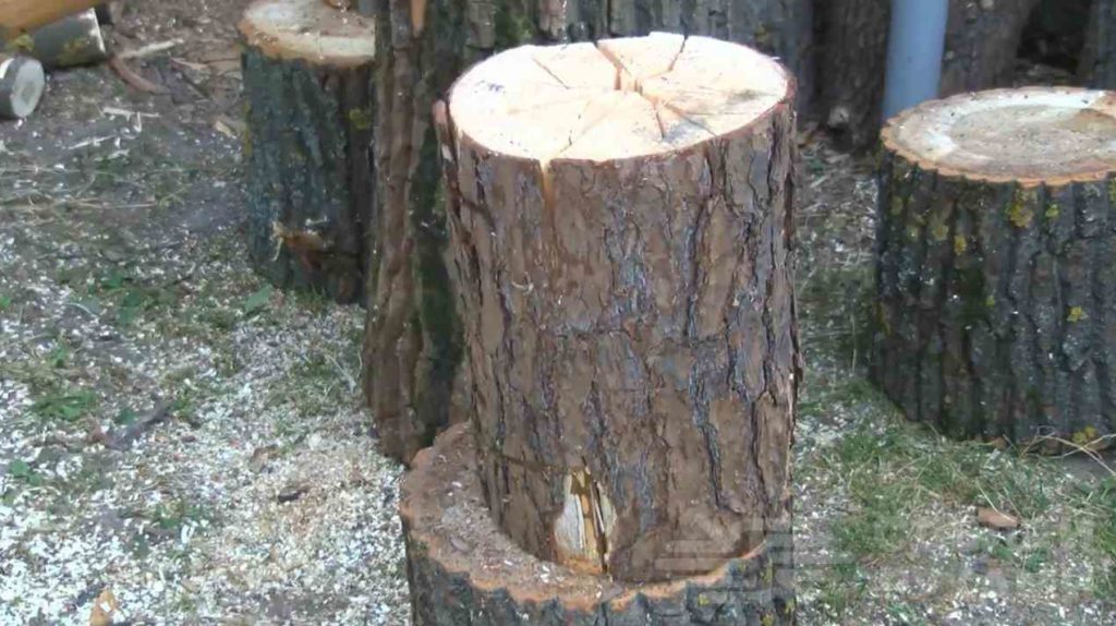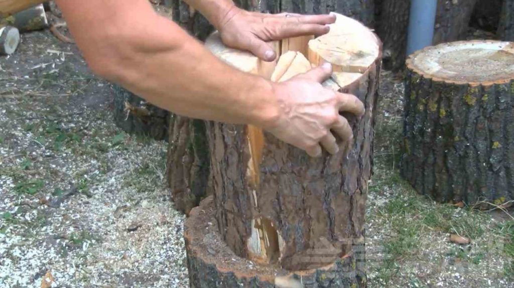 После этого колуном раскалываем колоду (при этом оно остается стоять на своем месте).