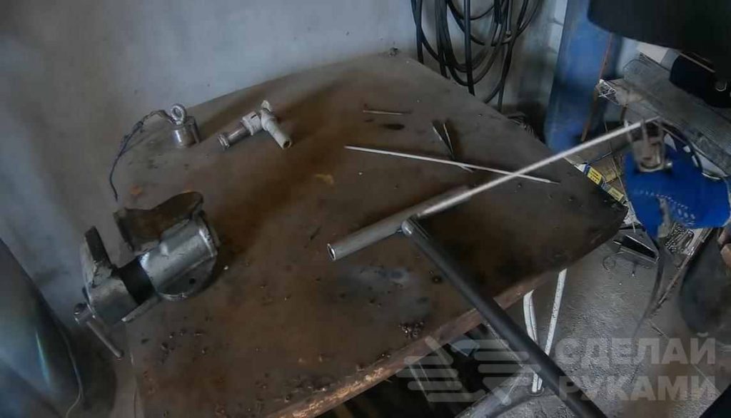 Теперь останется только приварить ручку к инструменту — небольшой кусок полудюймовой трубы автор приваривает перпендикулярно к основной трубе.