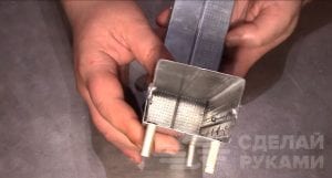 В верхнем профиле необходимо сделать прорези по бокам, чтобы сделать загиб. Конструкция практически полностью готова — осталось только скрепить все элементы печки заклепками, а затем провести «полевые испытания». В отличие от открытых конструкций походных печек, данная конструкция примечательна тем, что не коптит посуду.