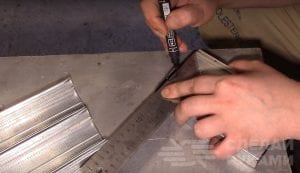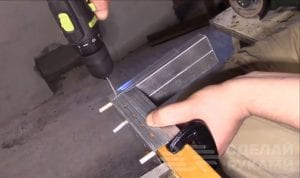 Далее на этих профилях необходимо сделать загибы, поэтому срезаем болгаркой боковые части. Затем на четырехмиллиметровые заклепки устанавливаем ножки из алюминиевых трубок, отрезанных по размеру. При желании вместе них можно использовать резьбовыми втулки и винтики.