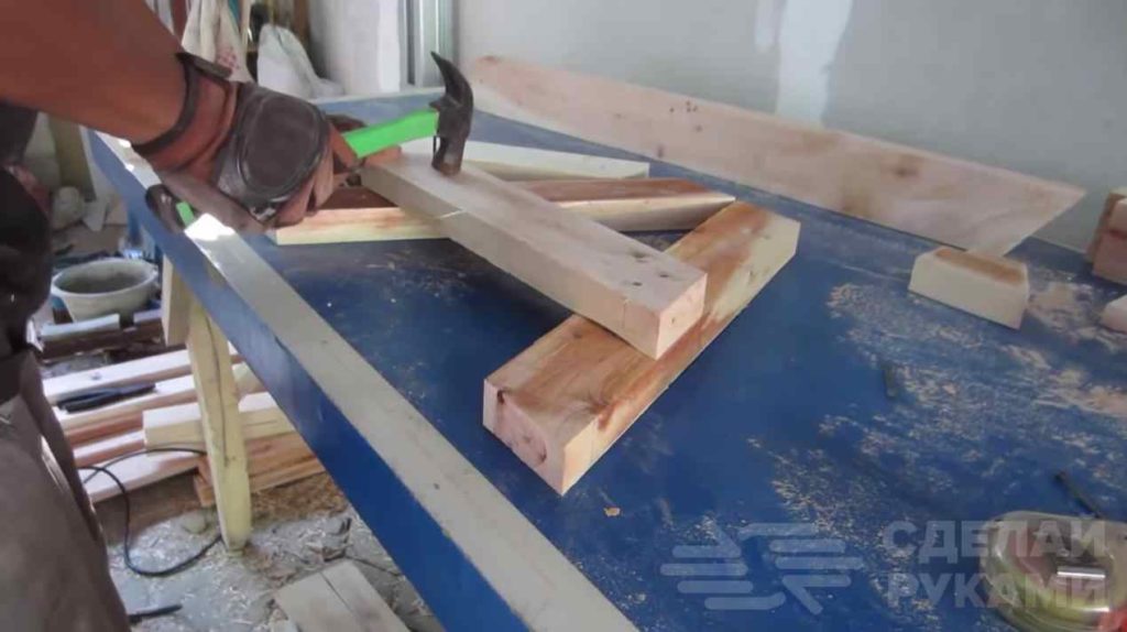Собираем вторую сторону точно таким же образом. Затем, установив параллельно обе стороны будущего изделия, примеряем доски для оснований.