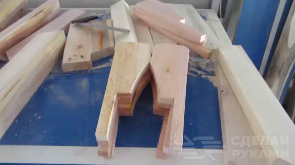 На следующем этапе приступаем к изготовлению ограничителей складывания и раскладывания. Вырезаем деталь, согласно чертежу, и дублируем её несколько раз. Шлифуем все грани заготовок. Чтобы облегчить задачу, можно воспользоваться фрезерным станком.