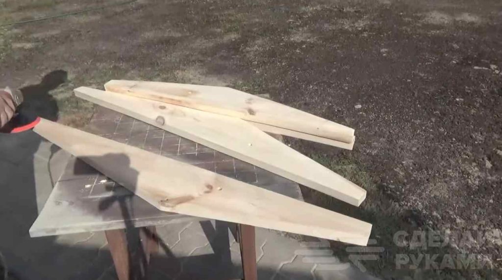 Первым делом необходимо будет вырезать четыре ножки. Заготовки имеют треугольную форму, причем острые углы нужно обрезать.