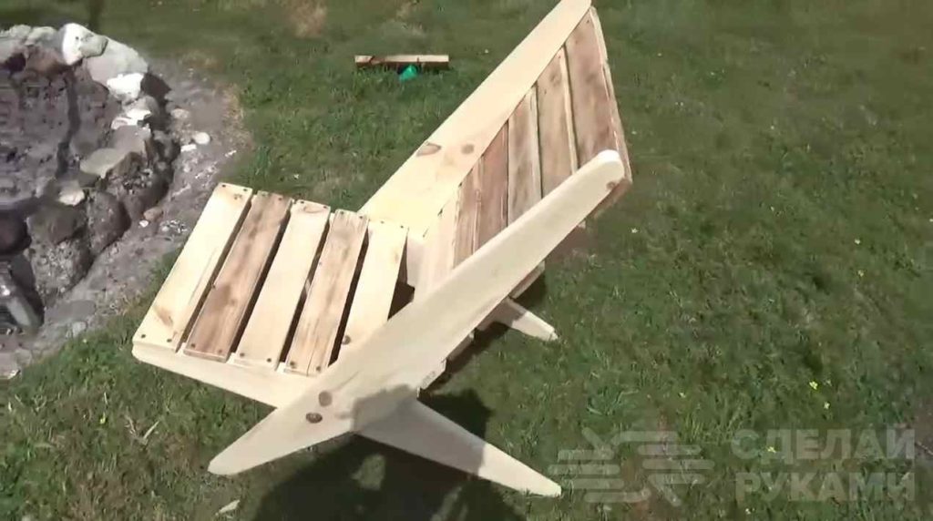 Вот такой простой и удобный стул для отдыха получился. В завершении останется только покрыть дерево лаком или минеральной пропиткой.
