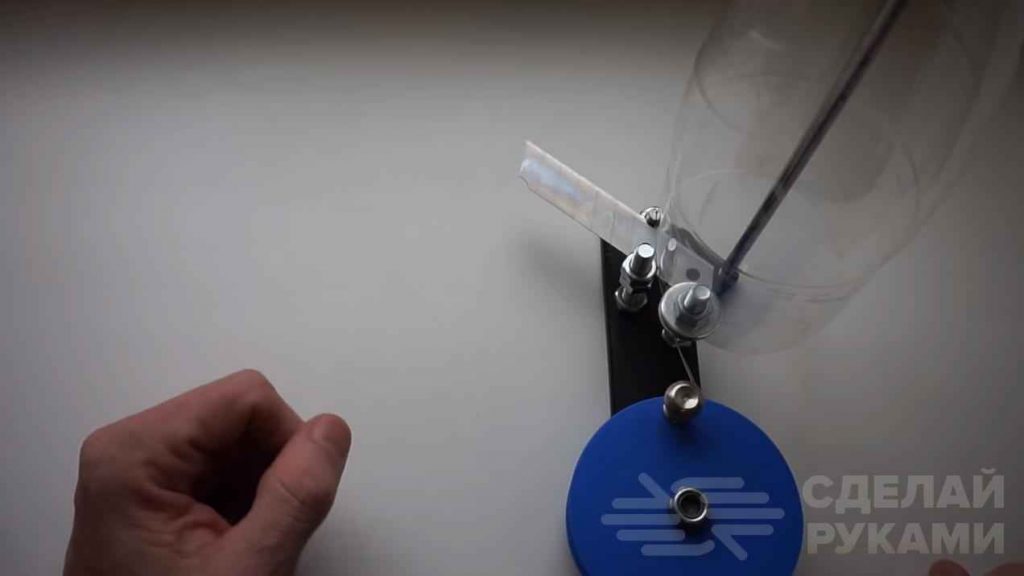 В уголке сверлится отверстие — в него вкручивается шпилька, на которую будет надеваться пластиковая бутылка. А лезвие для канцелярского ножа фиксируется между тремя болтами.