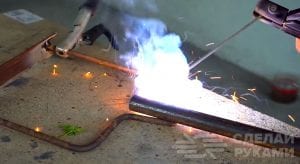 Идея поделки достаточно проста, её принцип работы похож на конструкцию ножа для чистки картофеля с плавающим лезвием. К рогатке из стального прутка приваривается острозаточенный уголок и длинная ручка.