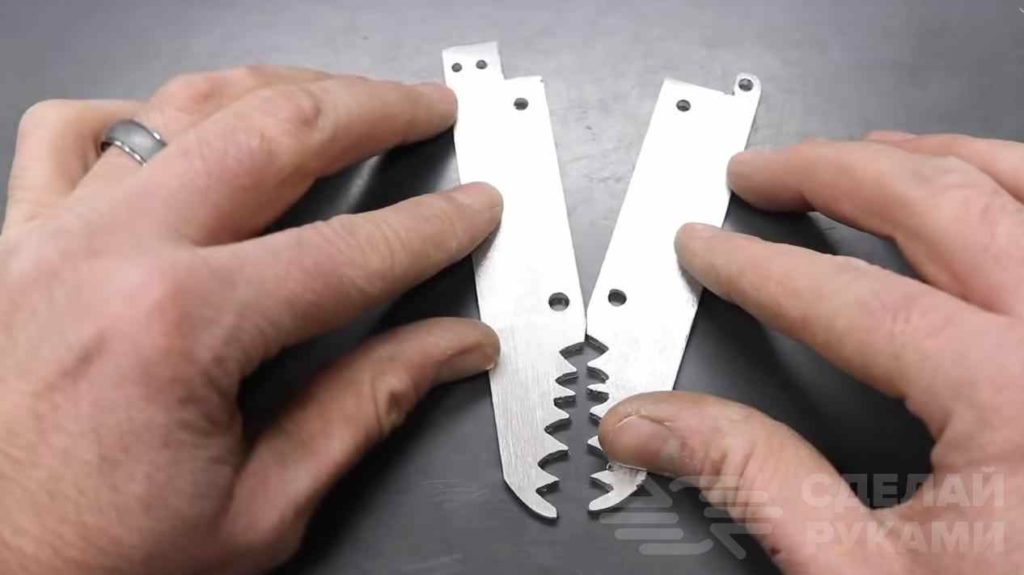С помощью бормашинки вырезаем заготовки с зубьями. Делаем разметку и затем сверлим в них отверстия.