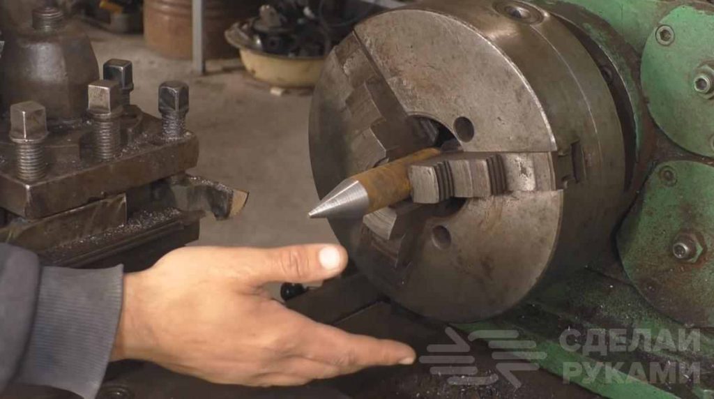 Зажимаем стальной кругляк в патрон токарного станка, после чего стачиваем один край на конус.