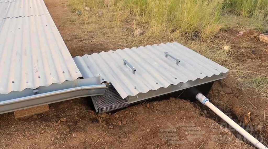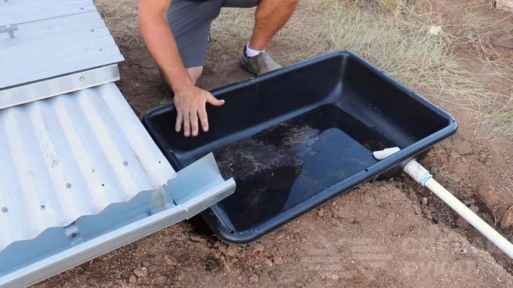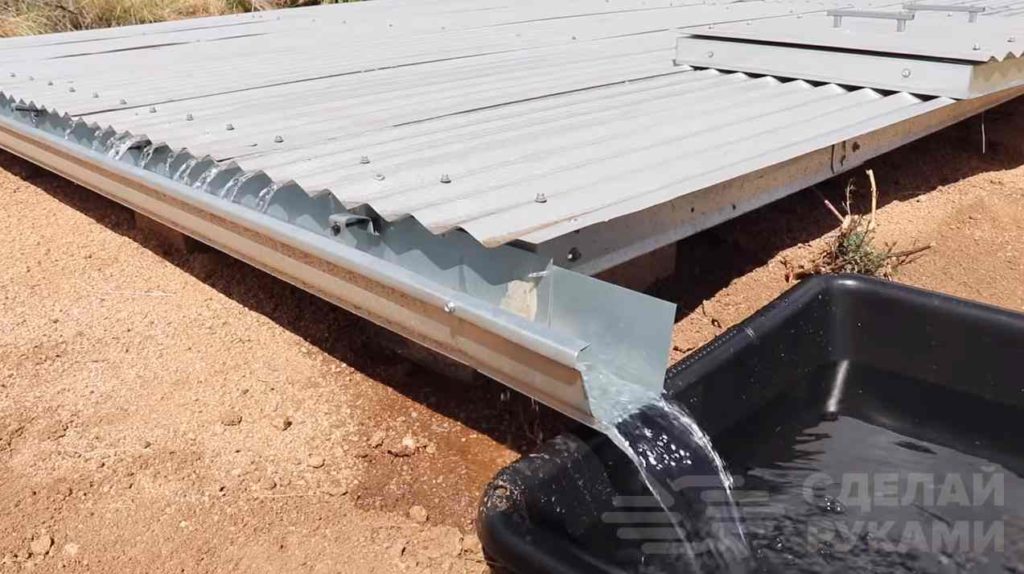 Дождевая вода (или вода, которая образуется при таянии снега) с «крыши» попадает в приемный резервуар.