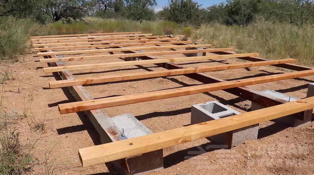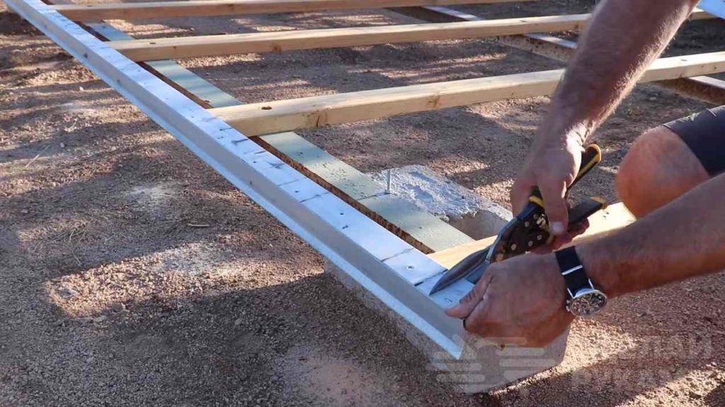 После этого крепятся промежуточные балки — для равномерного распределения нагрузки. По периметру каркаса автор крепит металлические отливы.