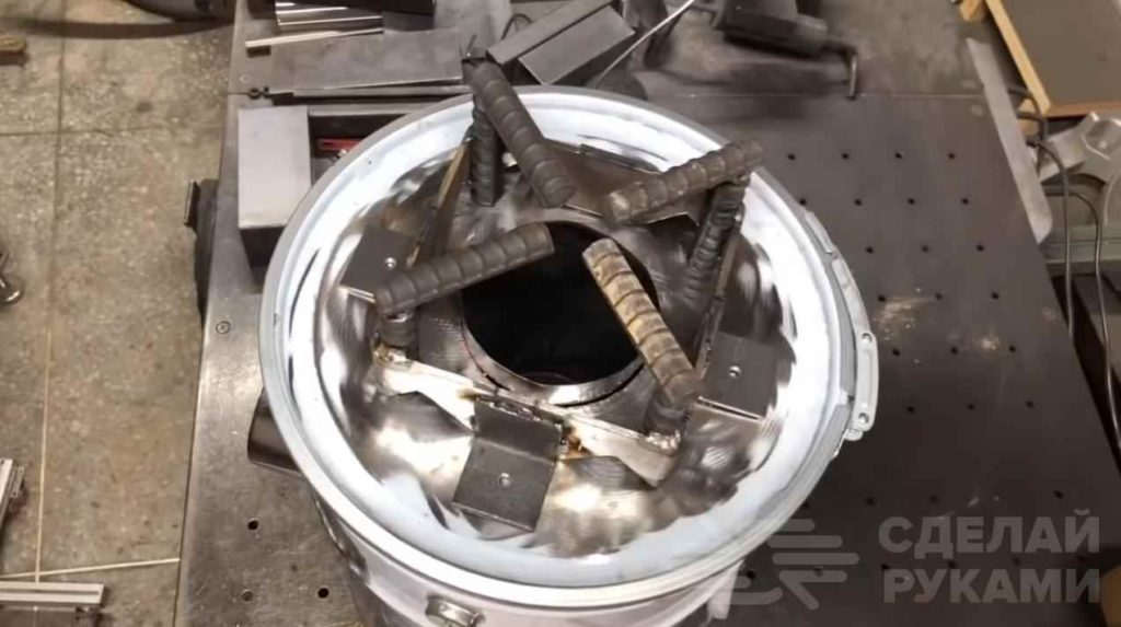 Красим всё высокотемпературной краской и можем пользоваться. Подробное изготовление можно увидеть на видео ниже. Обзор создан на основе видеоролика с YouTube канала StoveTV.