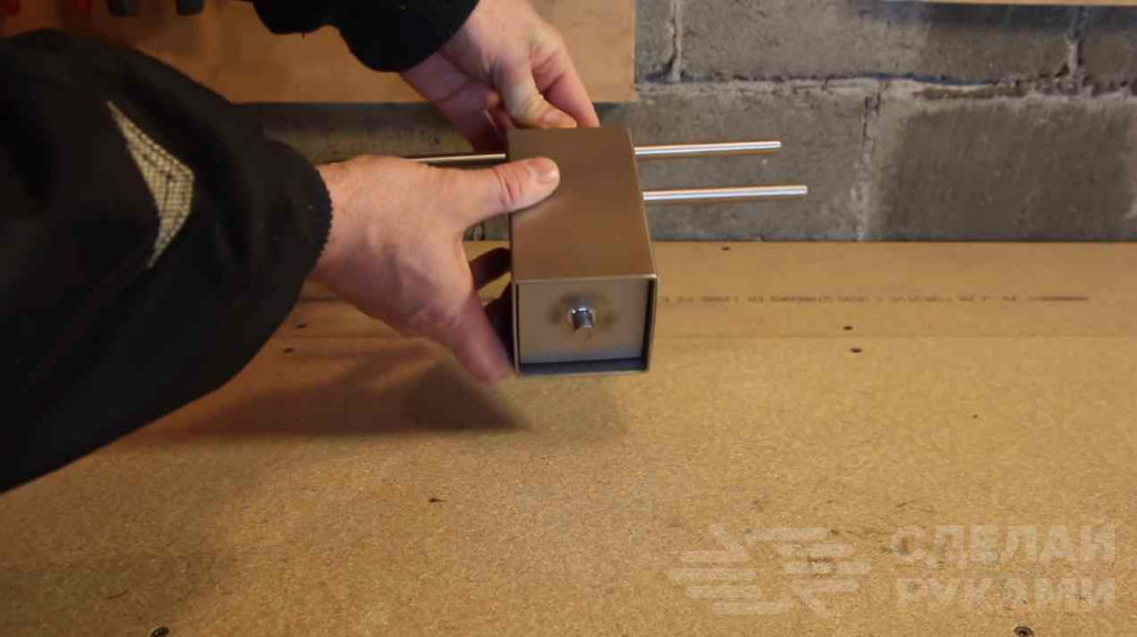 В верхней части трубы автор приваривает две ручки из кусков круглого прутка. Такие же две ручки нужно будет приварить к профильной трубе.