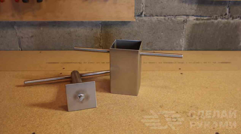 С обратной стороны пластины надо приварить кусок круглого прутка, который будет делать углубления по центру брикетов.
