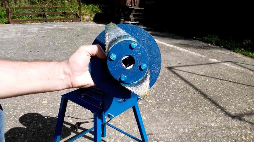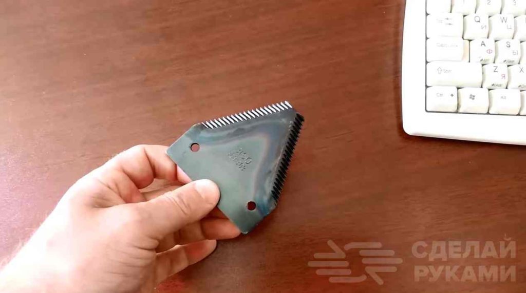 В качестве режущих ножей автор использует ножи с зубчатыми кромками от тракторной косилки. Их без проблем можно купить — стоят они копейки.