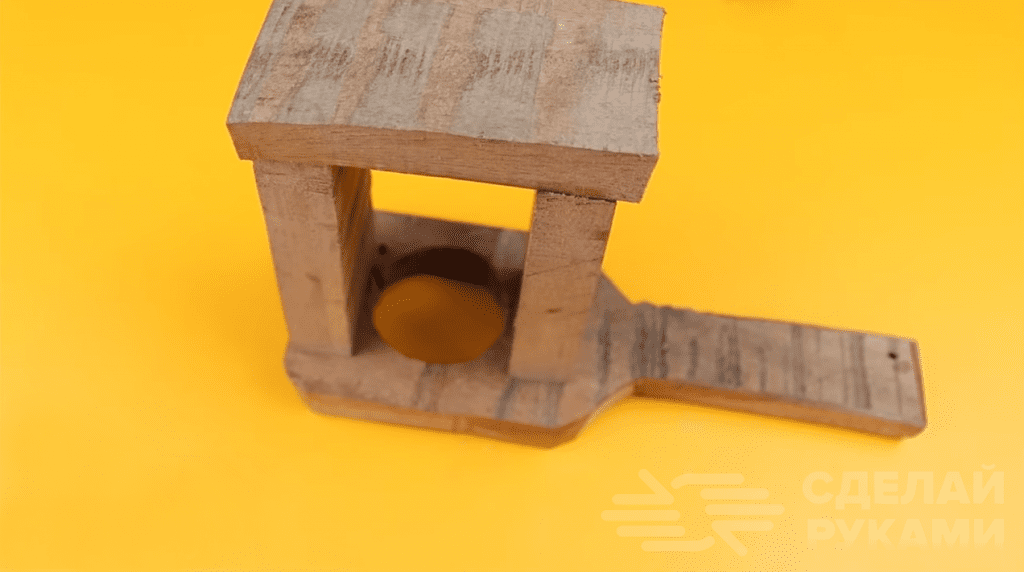 После того, как сделали «окно», придаем заготовку необходимую форму. После этого вырезаем еще три куска доски (или фанеры). Все детали соединяем вместе при помощи саморезов. Перед тем, как закручивать саморез, желательно просверлить отверстие.