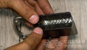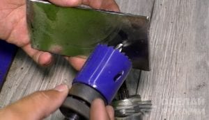 Если коронки под рукой нет, можно сделать такое отверстие «дедовским методом» — насверлить много мелких отверстий по всей окружности, после чего обработать напильником. Далее зажимаем деталь в тисках или прижимаем к столу при помощи струбцины, затем делаем разметку и сверлим отверстия для крепления.