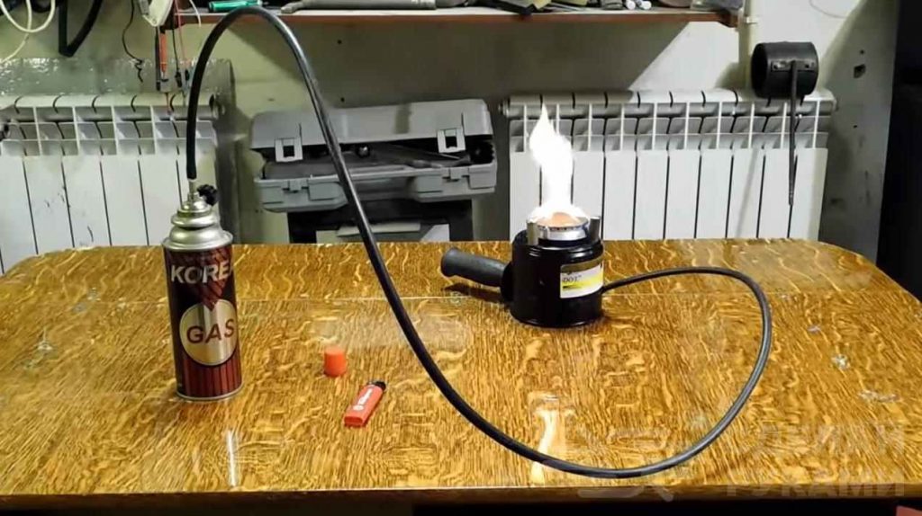 Причем работает походная горелка от газового баллончика. Для изготовления данной самоделки автор использует корпус фильтра от противогаза, алюминиевую конфорку от газовой плиты, а также некоторые другие детали.