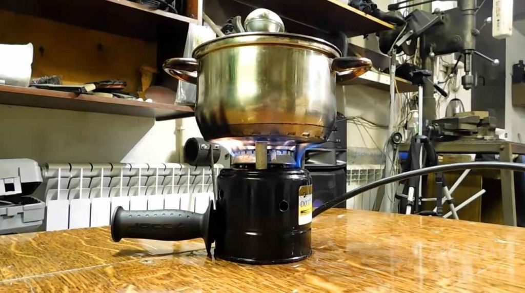 При помощи самодельной туристической газовой горелки с одной конфоркой можно приготовить или подогреть пищу, находясь, например, на охоте, рыбалке, даче или в походе.