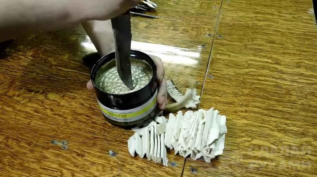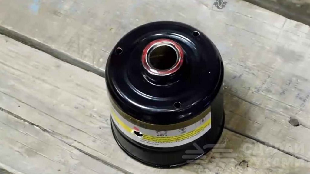 Первым делом необходимо с помощью ножа вскрыть, как консервы, фильтр от противогаза, и извлечь из него все «внутренности». В результате должен остаться только сам корпус фильтра.