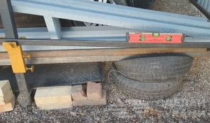 После того как установлены столбики на два из них ставятся приспособления, на которые устанавливается перемычка, с помощью прижимных болтов регулируется уровень, затем следуют сварочные работы.