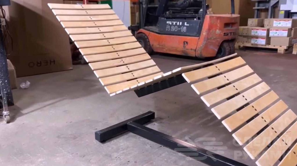 Такой лежак позволит вам отдохнуть в процессе работы и даже немного подремать. Причем сделать уличный шезлонг для дачи можно своими руками из доступных материалов: профильной трубы и деревянных реек.