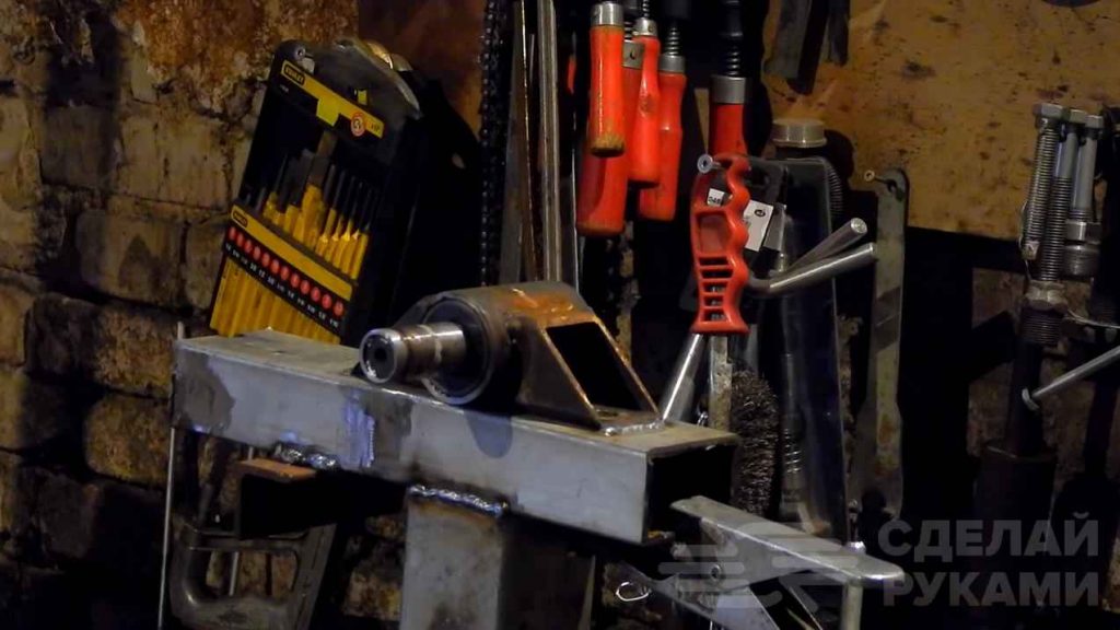На следующем сварные швы нужно зачистить болгаркой. После этого к профилю приваривается еще корпус с подшипником и валом.