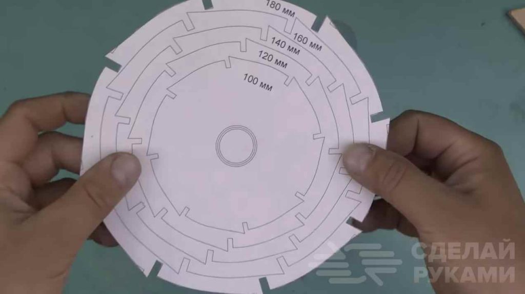 После того как подгоните посадочное отверстие по размеру, приложите бумажный трафарет к диску. Сам трафарет можно скачать по ссылке.
