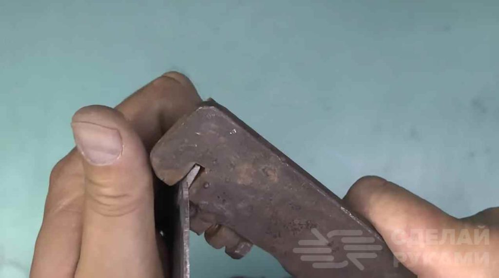 После этого необходимо будет развести зубья. Сделать это можно и обычными плоскогубцами. Однако чтобы сделать угол одинаковым, автор использует специальную разводку. Нечетные зубья нужно гнуть влево, четные — вправо.