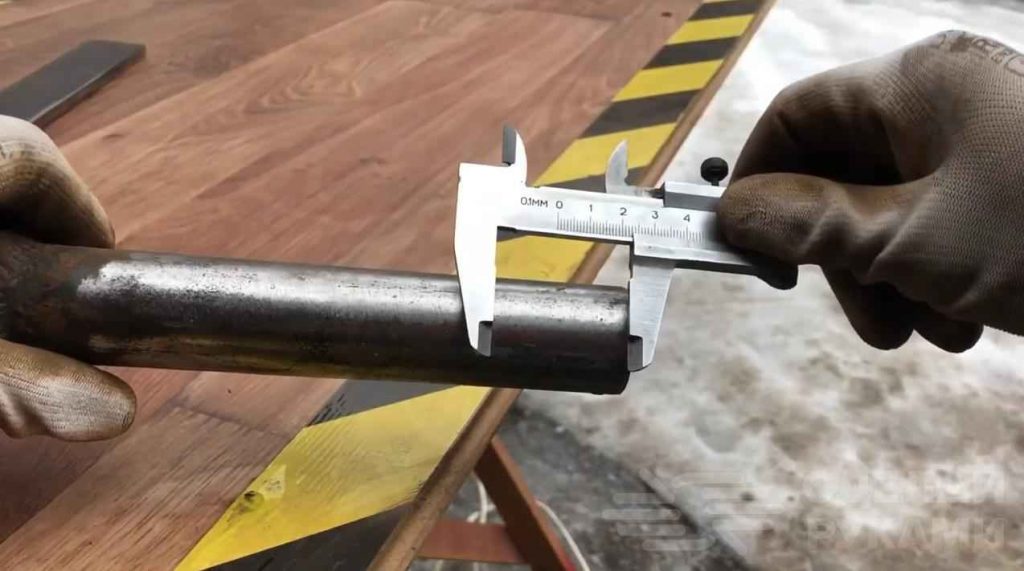 Первым делом необходимо будет отрезать заготовки по размеру и зачистить их болгаркой с лепестковым кругом. Потом от трубы большего диаметра нужно отрезать три куска длиной по 40 мм (по ширине полосы металла).