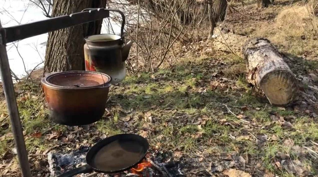 По мнению автора, данная конструкция будет даже намного лучше и удобнее переносного мангала. На таком самодельном таганке можно будет без проблем разместить чайник, казан и сковороду. Таким образом, вы потратите меньше времени на приготовление вкусного обеда.