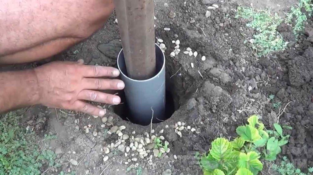 Также можно просто приварить два отрезка уголка или арматуру, перпендикулярно трубе. Устанавливаем трубу по центру лунки.