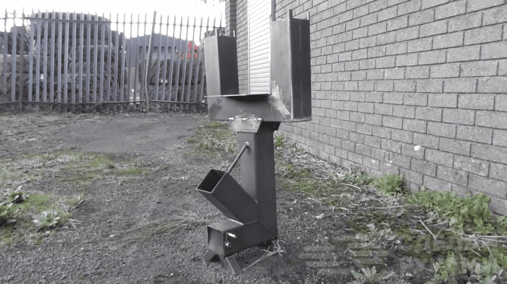 Ракетная печь очень выручает в полевых условиях, а также на дачном участке, если нет газа или электричества. При помощи самодельной ракетной печи с варочной поверхностью можно не только воду быстро нагреть до кипения, чтобы суп сварить, но также мясо или рыбу пожарить вместе с овощами.