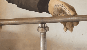 При помощи специальной коронки или на токарном станке просверлите в круге отверстие под диаметр трубы. К нижней части стержня приварите стальной треугольник (можно использовать обрезки металла, оставшиеся от квадрата), а потом на расстоянии 10 см от его края насадите круг, зафиксировав его электросваркой. В продольном сечении диска сделайте два пропила и разогните их в разные стороны, чтобы угол изгиба был в пределах 25–30°. К верхней части трубы приварите бендикс и горизонтальную ручку. Земляной бур своими руками готов.