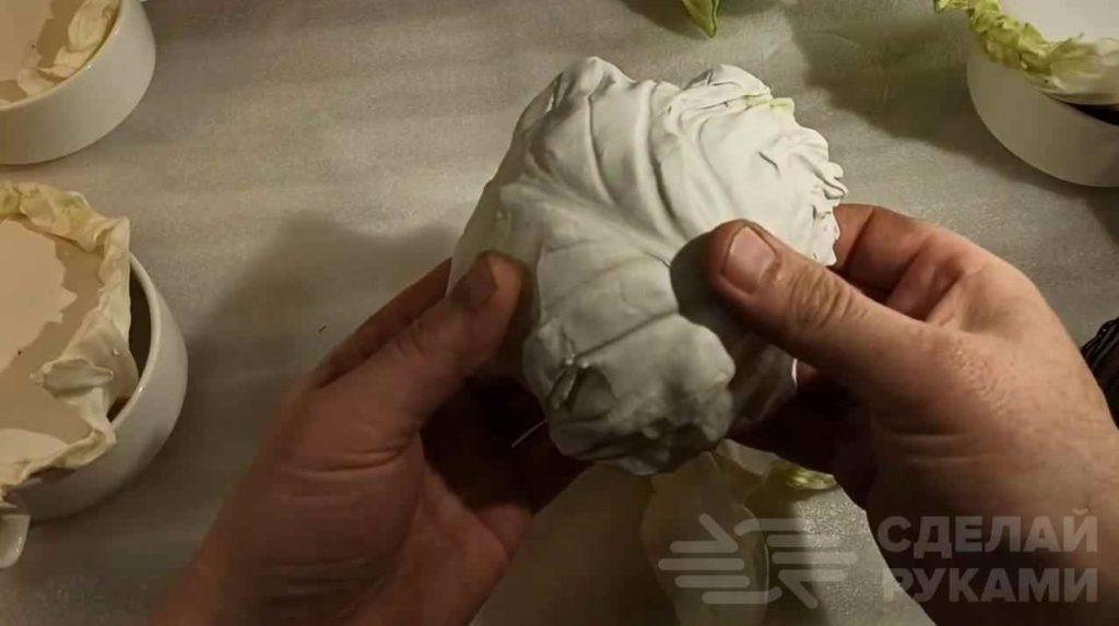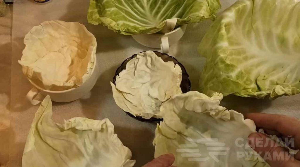 Примерно через 30-40 минут аккуратно отделяем капустные листы от гипсовой заготовки.