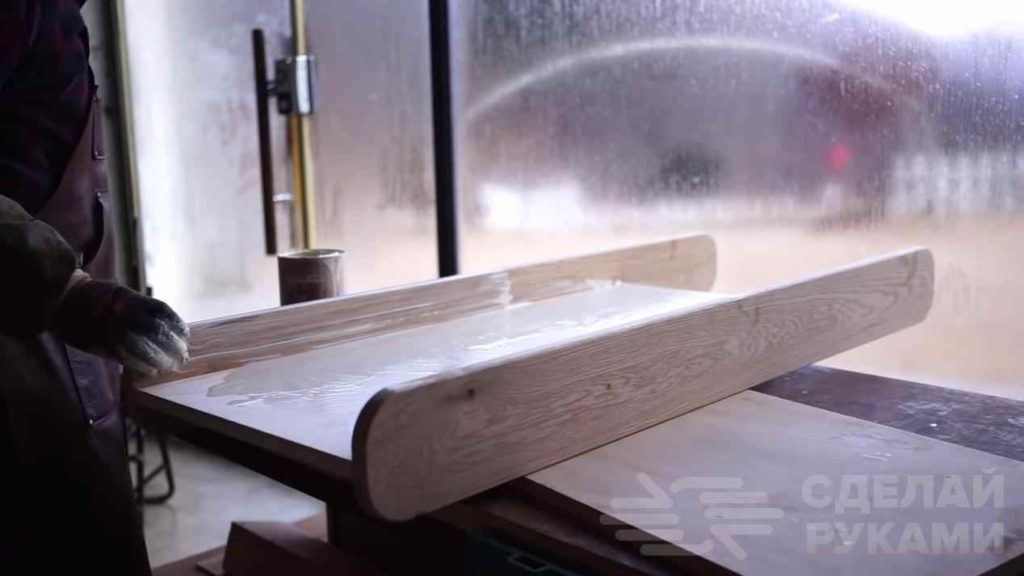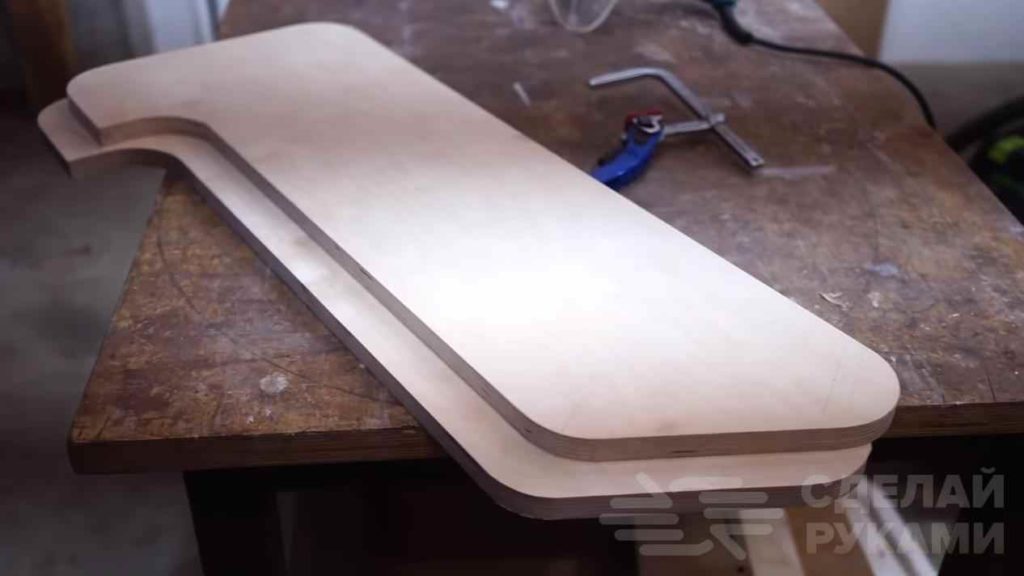 Затем останется сделать скат. Подготовленные детали соединяем вместе, и все готово. Покрываем фанеру слоем минерального масла, предварительно хорошо отшлифовав ее.