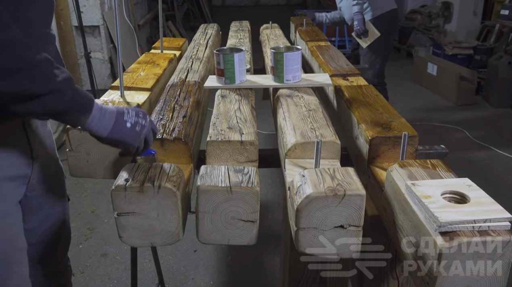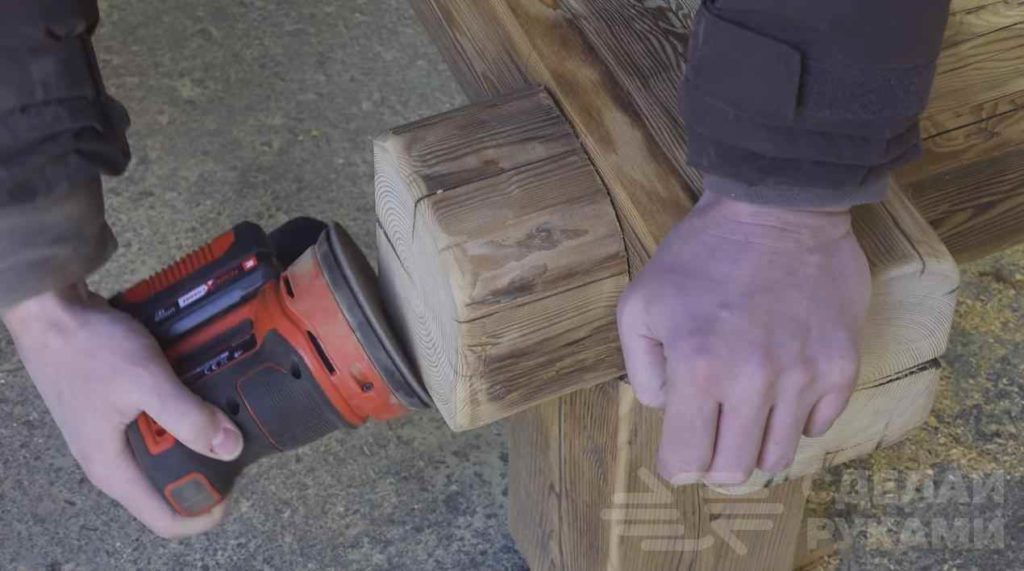 Далее все элементы конструкции необходимо будет отшлифовать, а потом — покрыть лаком или пропитать минеральным маслом.