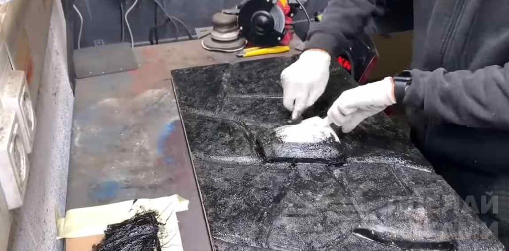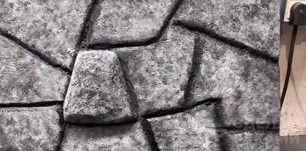 После этого разводим черный силикон с небольшим количеством белой краски, и закрашиваем уже только сами «камни». Имитация декоративной каменной кладки готова!