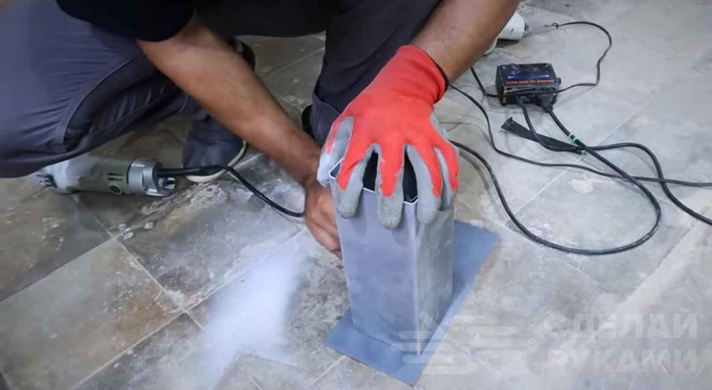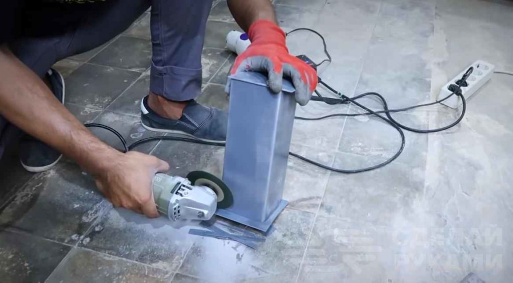С помощью болгарки отрезаем все лишнее, чтобы стороны торцевых заглушек были заподлицо с квадратной трубой. Оставляем выступать на 1-1,5 см только одну сторону (это будут ножки коробочки).
