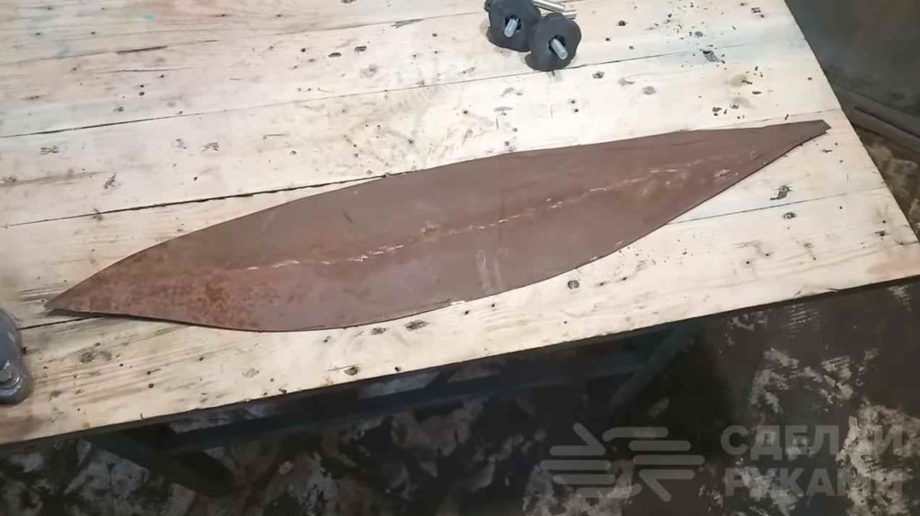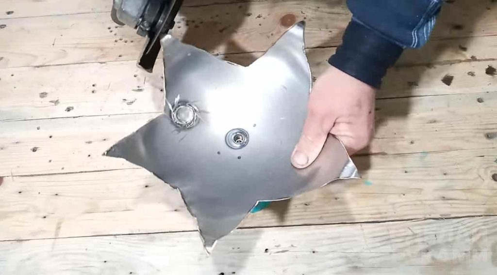 Нижняя часть фреонового баллона выступает в качестве урны, а верхняя — является подставкой для нее. Из листового металла вырезаем еще одну заготовку. Зачищаем ее и красим.